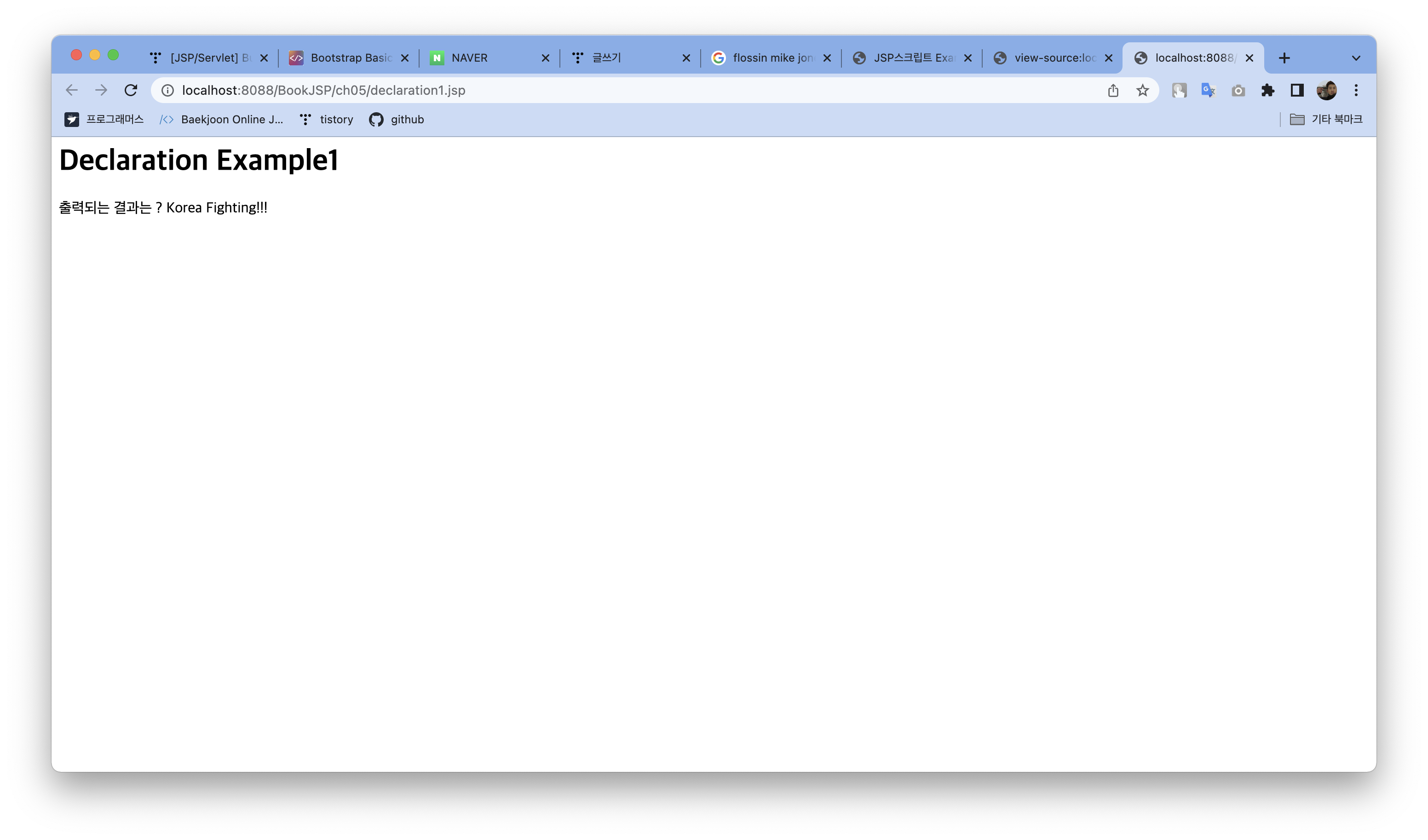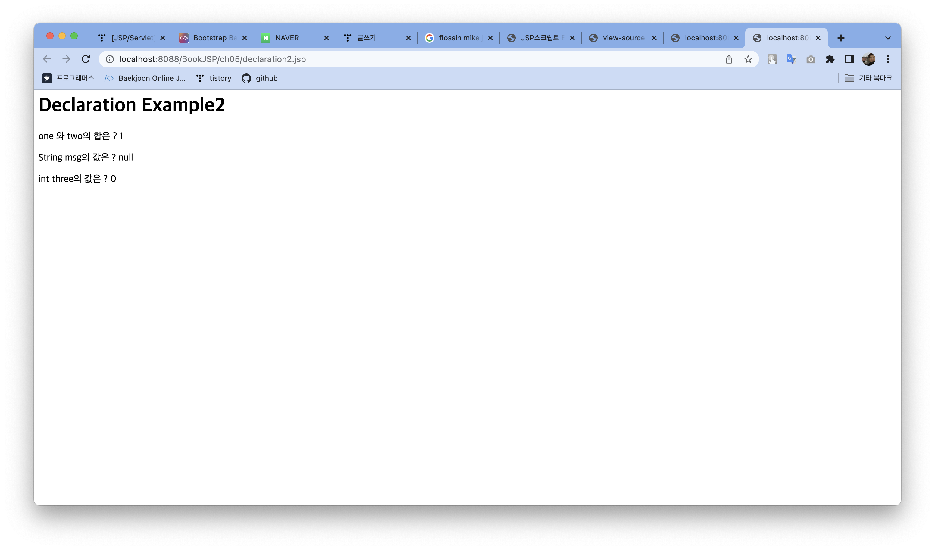 선언문의 출력1 : <%=declaration%><p/>