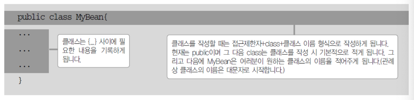 - 자바빈즈 JSP에 안의 수 많은 자바 코드들이 담당했던 일들을 독립적으로 처리하기 위한 부품과 같음
