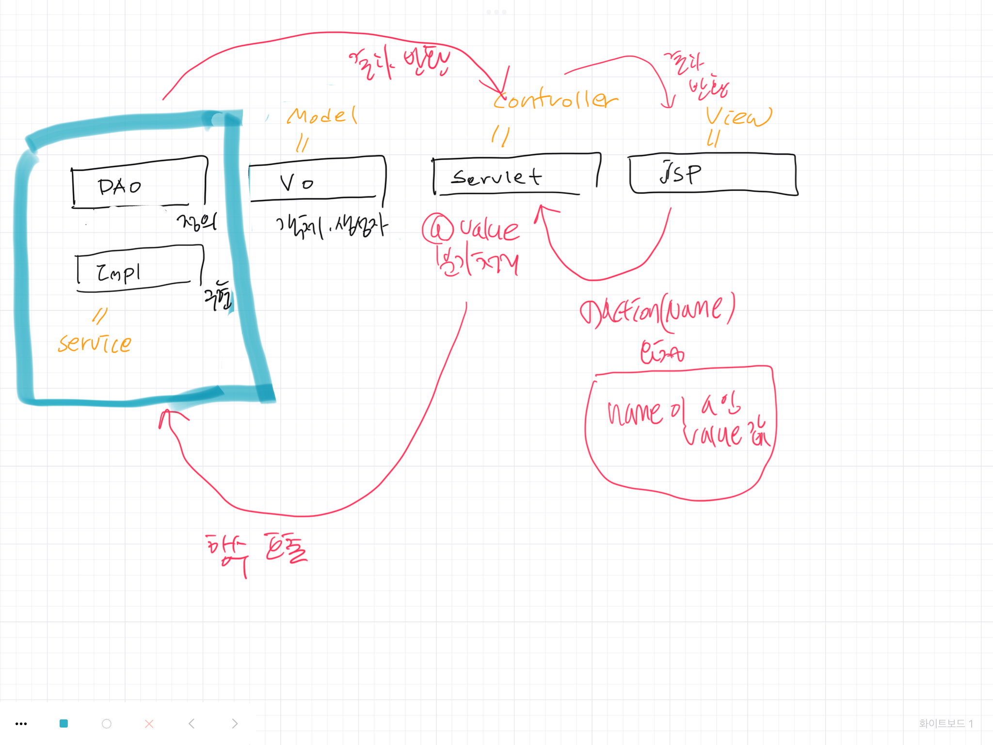 1. JSP에서 Servlet에게 Action(ActionName) 요청 (해당 프로젝트에서 a= 어쩌고가 들어옴... (name이 a인 value 값))
