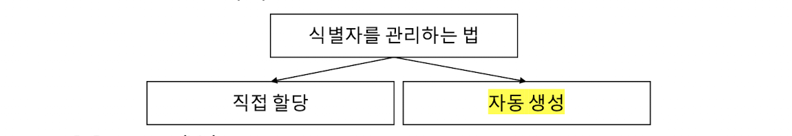 - 식별자를 직접 할당하지 않고 자동으로 생성