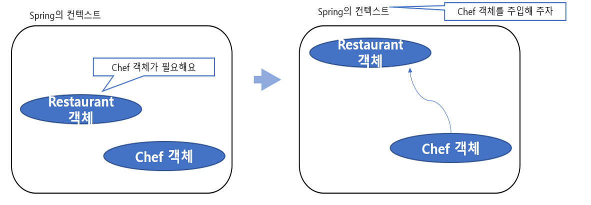 - 스프링을 이용하는 환경에서 각각의 객체를 생성하고 이를 스프링의 설정을 통해서 연결