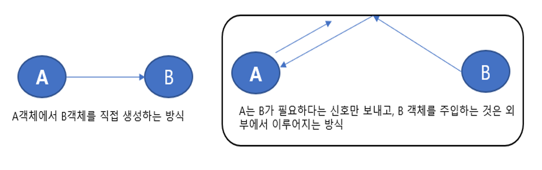 - 코드의 내부에서 객체간의 연결을 이루지 않고 외부에서 설정을 통해 객체 간을 연결하는 패턴
