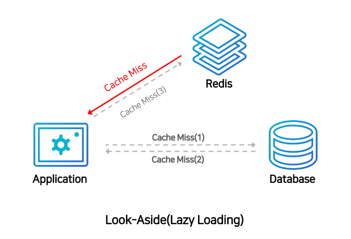 - 레디스에 찾는 키가 없다면 애플리케이션은 DB에 접근해서 데이터를 직접 가지고 온 뒤 레디스에 저장