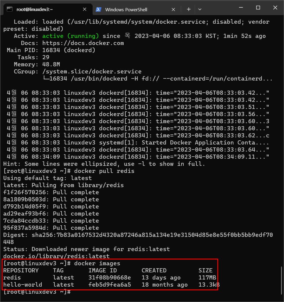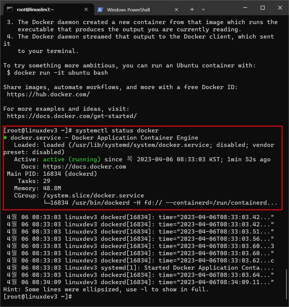 1.6 Docker 실행 테스트 (hell-world 이미지 띄우기)