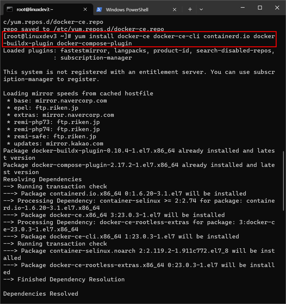 yum install docker-ce docker-ce-cli containerd.io docker-buildx-plugin docker-compose-plugin