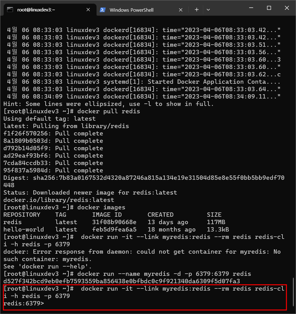 docker run -it --link myredis:redis --rm redis redis-cli -h redis -p 6379