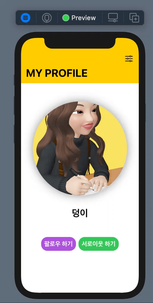 ContentView의 NavigationView로 MyProfileView로 넘어왔기 때문에 MyProfileView에서는 NavigationView로 감싸 줄 필요가 없음