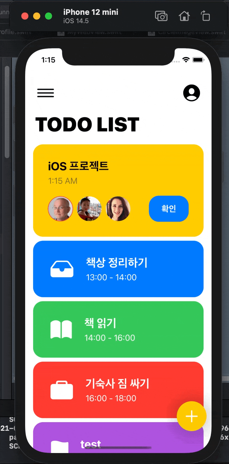 MyProject(icon: "book.fill", title: "책 읽기", start: "14:00", end: "16:00", bgColor: Color.green)