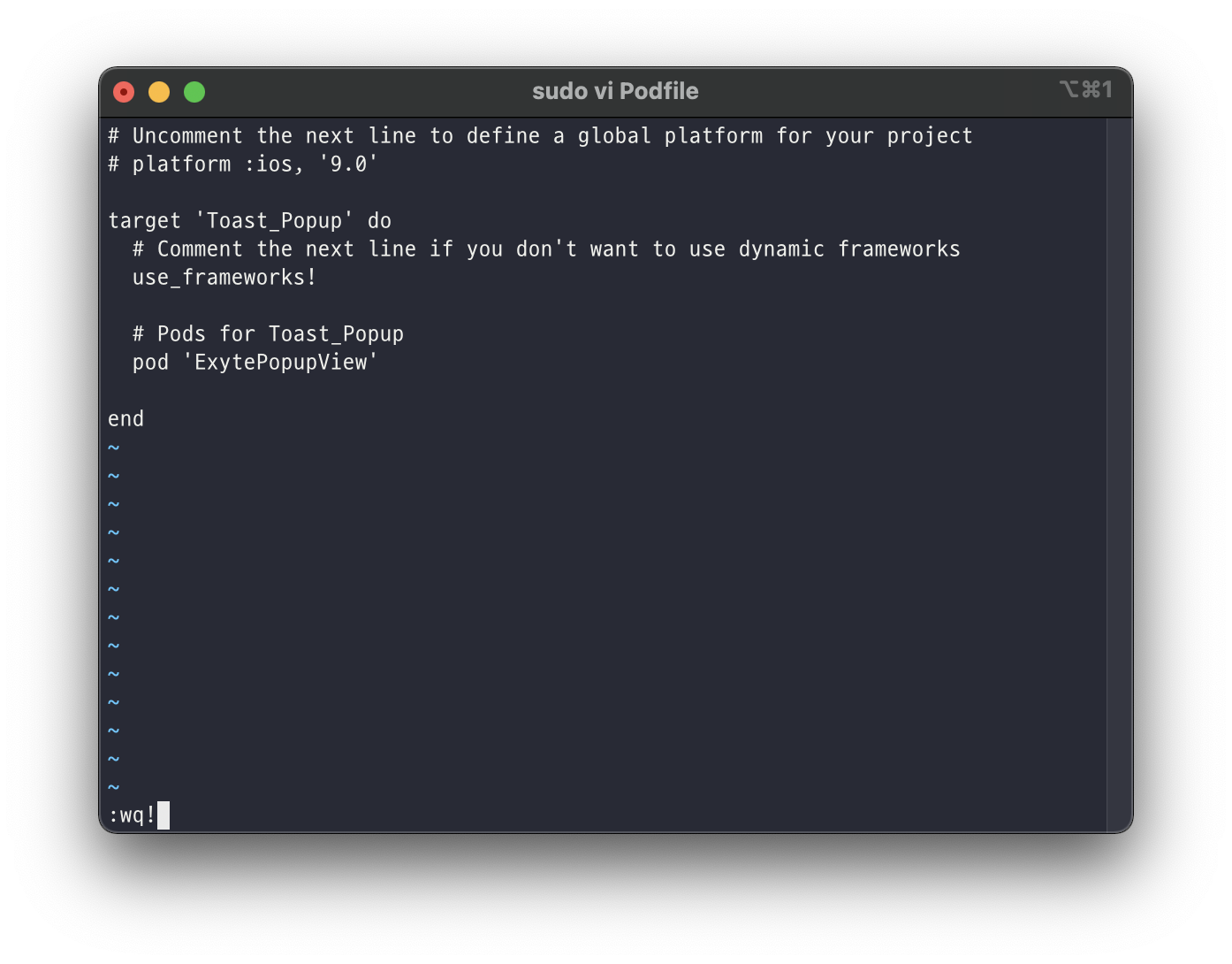 PopupView를 설치하기 위해 Podfile에 추가하기