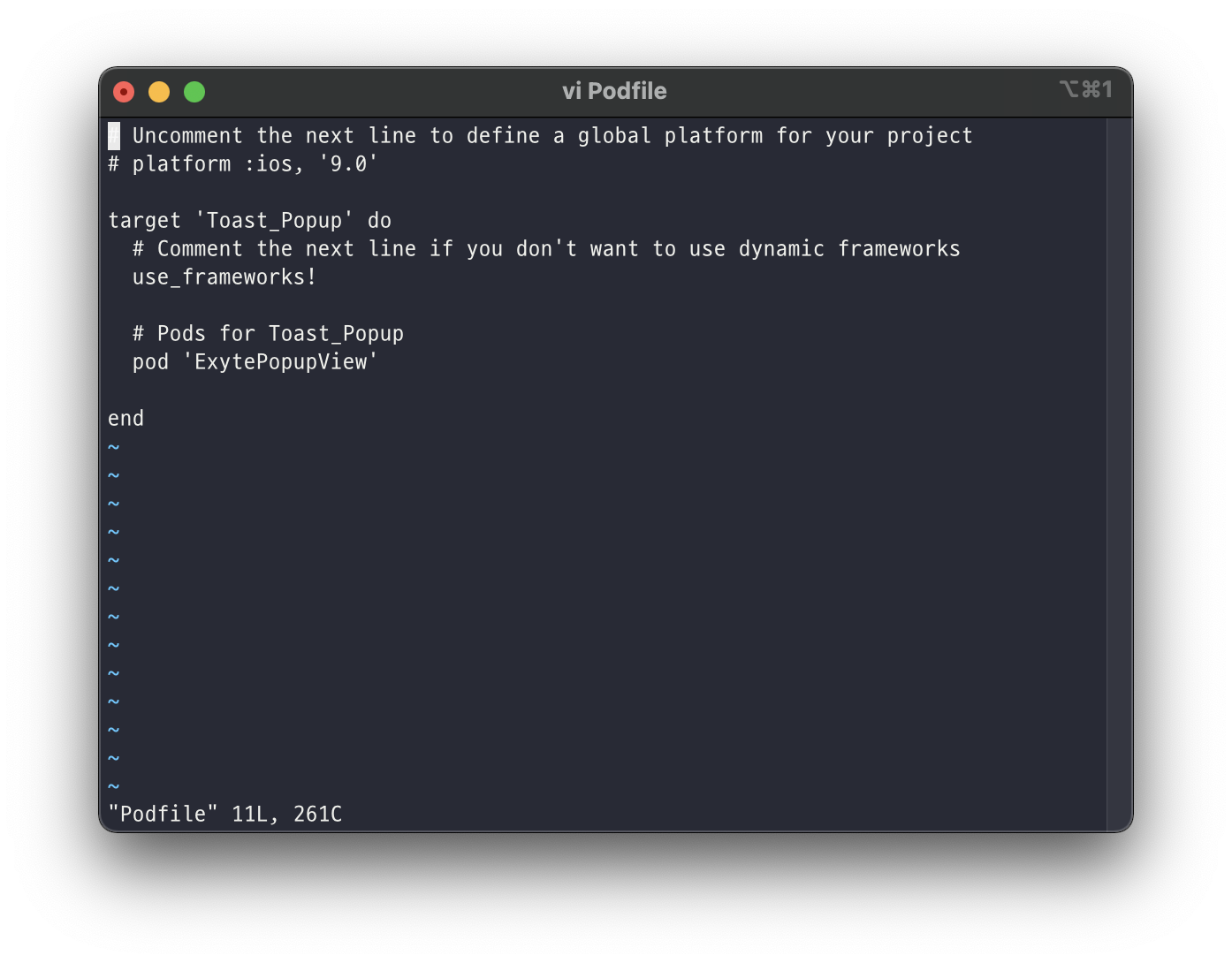 PopupView를 설치하기 위해 Podfile에 추가하기