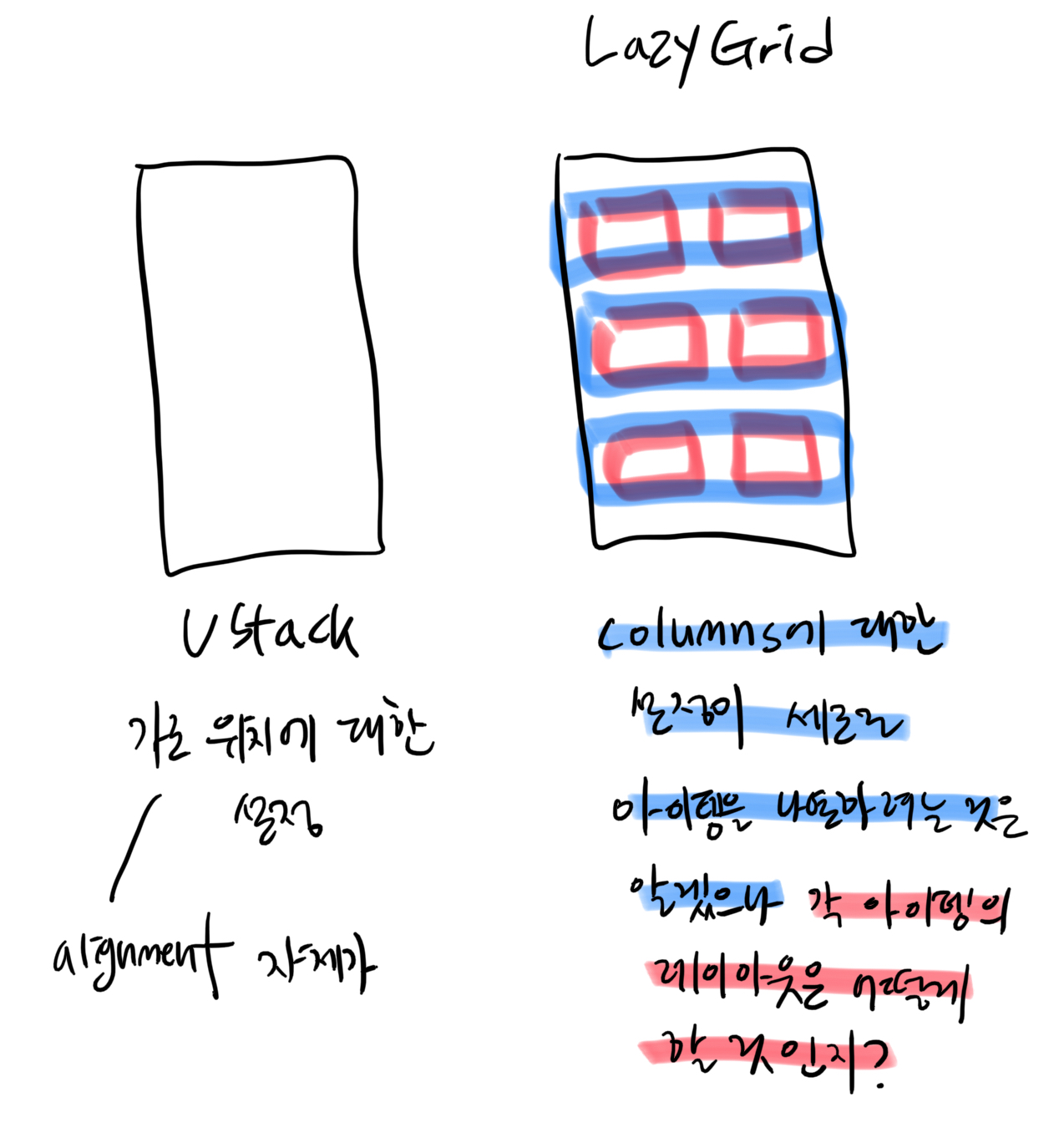 LazyVGrid란? 뷰를 화면에 보여줄 때 화면에 보이는 부분만 렌더링이 되는 기능