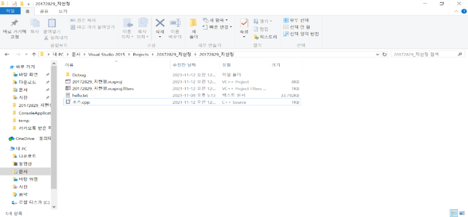 프로그램을 실행하면 폴더 상태가 변화한 것을 확인 할 수 있다.