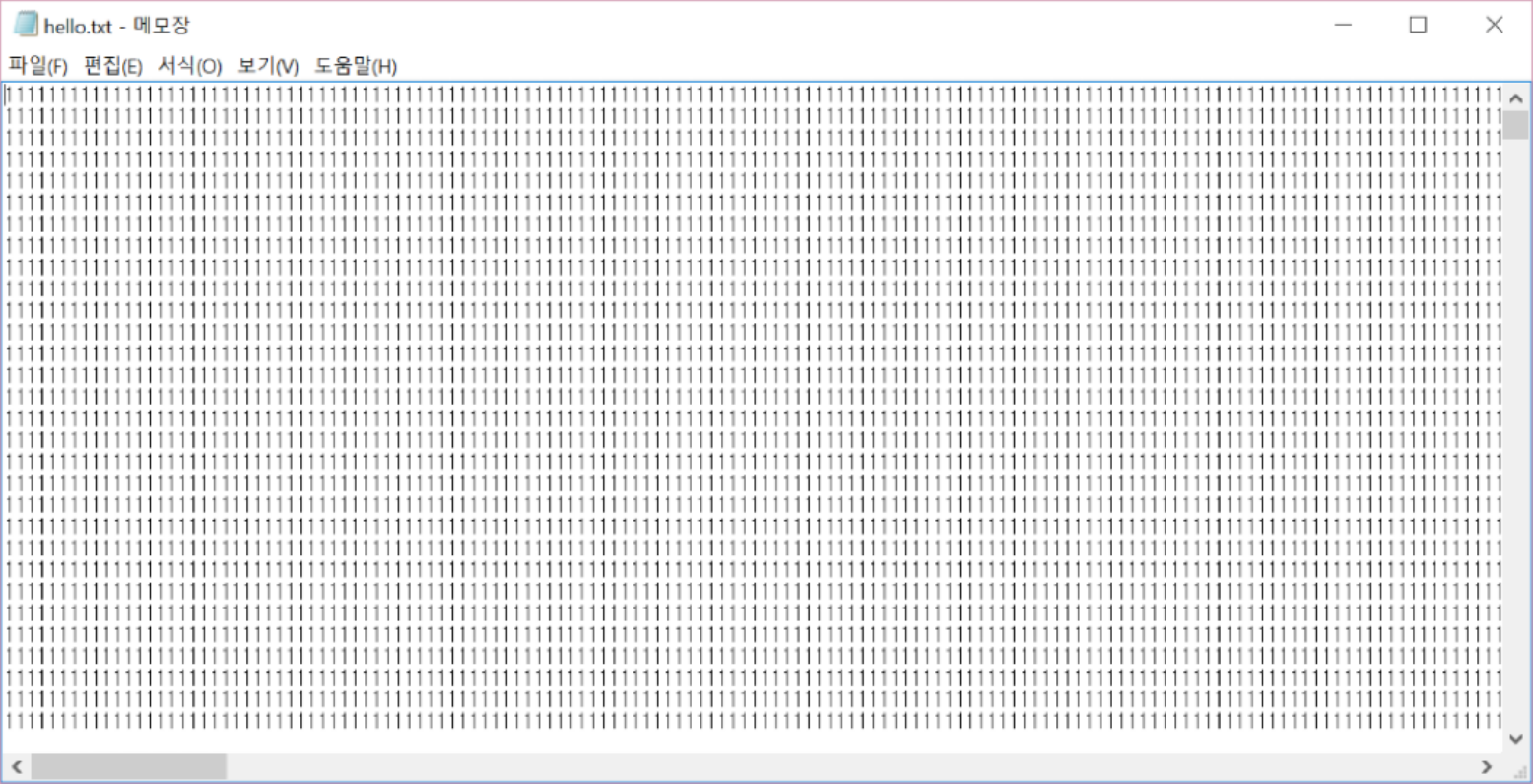 hello.txt 파일은 아래의 사진으로 1로 가득 채워져 있는 33,792KB 파일이다.