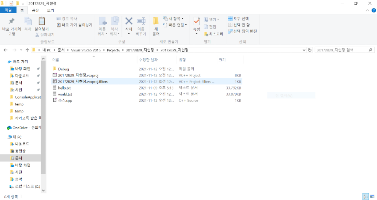 프로그램 실행 전 hello.txt 파일을 생성해서 프로그램 폴더에 첨부해 두었다.
