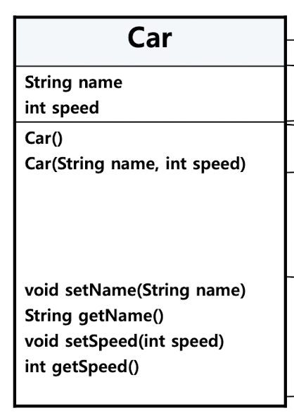 - 클래스를 정의할 때 필드는 private로 하여 객체 내부의 정보를 보호하고(정보은닉) 필드에 대한 Setter와 Getter를 두어 객체의 값을 변경하고 참조하는 것이 좋음