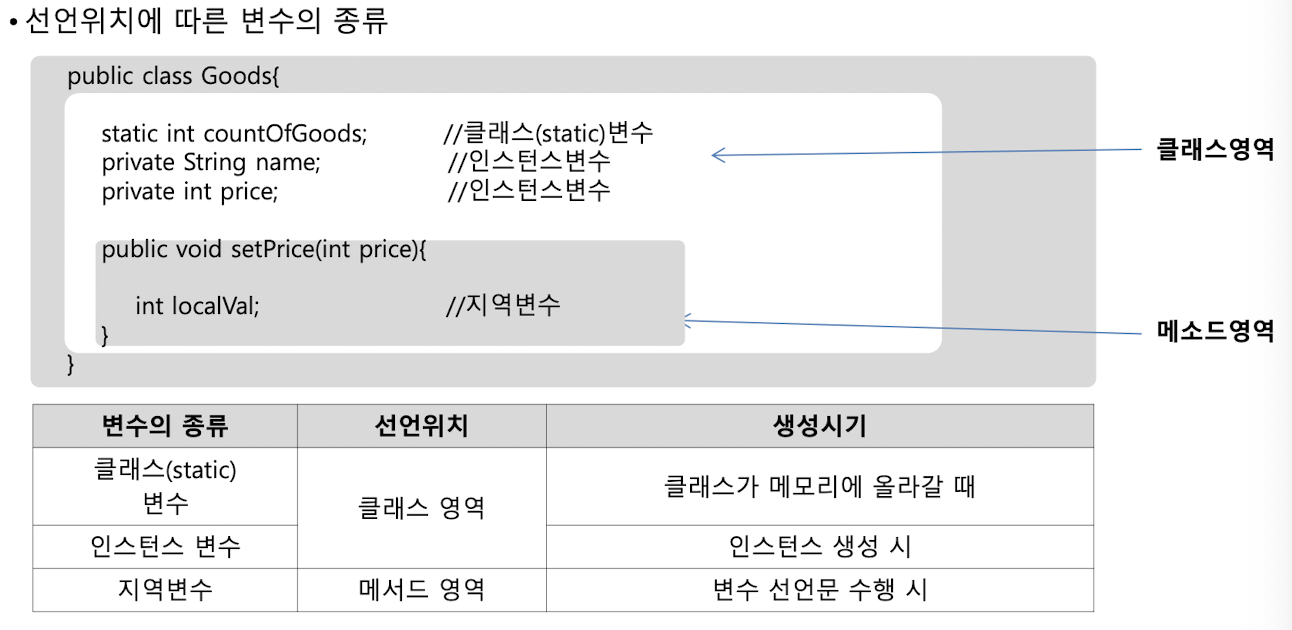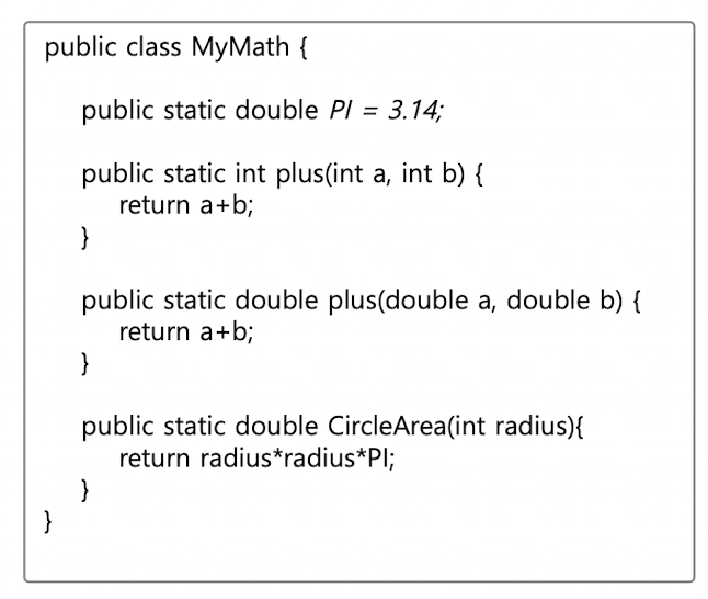 - 객체(인스턴스) 없이도 사용 가능 클래스이름.static변수명 으로 접근
