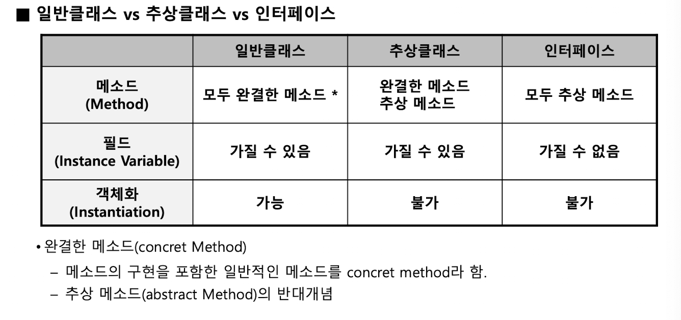 - 인터페이스는 다른 클래스에 의해 구현될 수 없음