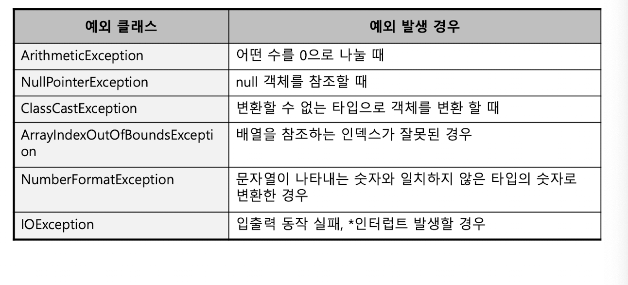 - 번역시의 에러가 아닌 실행시 에러를 예외라 함