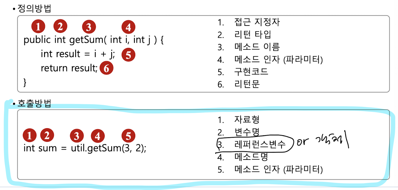 메소드: 객체의 기능 또는 행동을 정의하는 함수