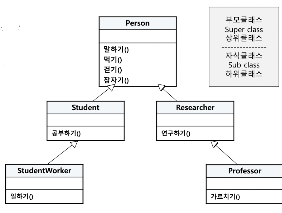 - 상속의 개념은 코드를 간결하게 하고 코드의 재사용성을 높임