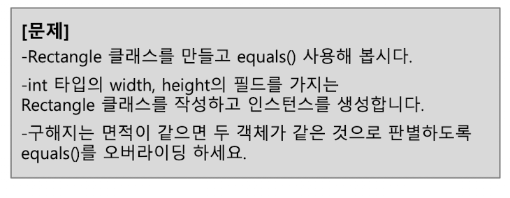 - 두 객체의 비교시 == 와 Object 클래스의 equals() 메소드를 사용함