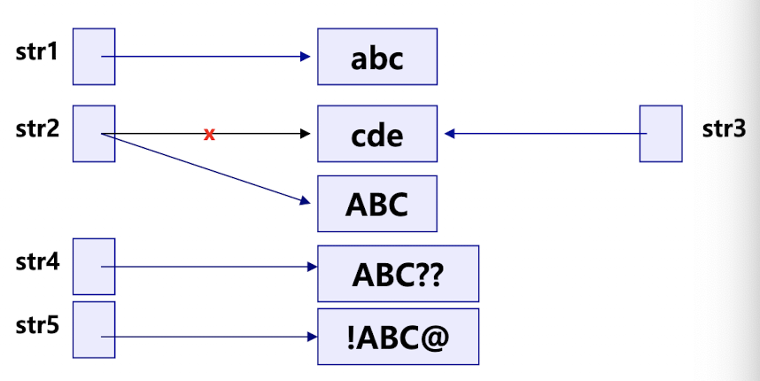- 문자열 상수: ""로 둘러싸인 문자열 ➡️ 한번 만들어진 String 객체는 변경 불가 (immutable)