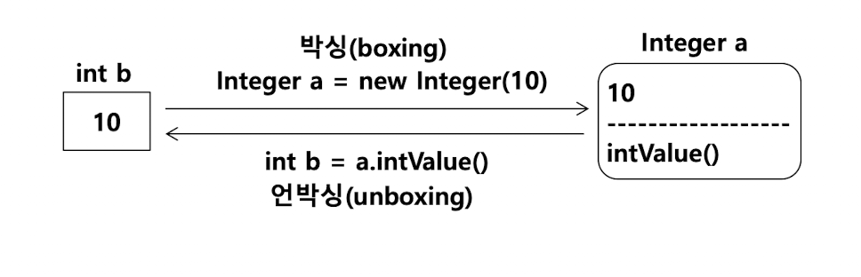 - Wrapper 클래스를 기본 데이터 타입으로 변환하는 것: unboxing