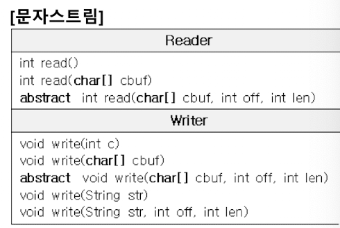 - java.io 패키지에서 I/O를 위한 4개의 추상 클래스