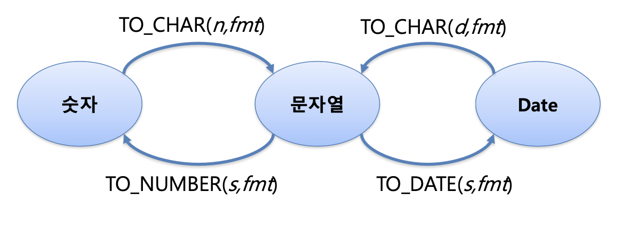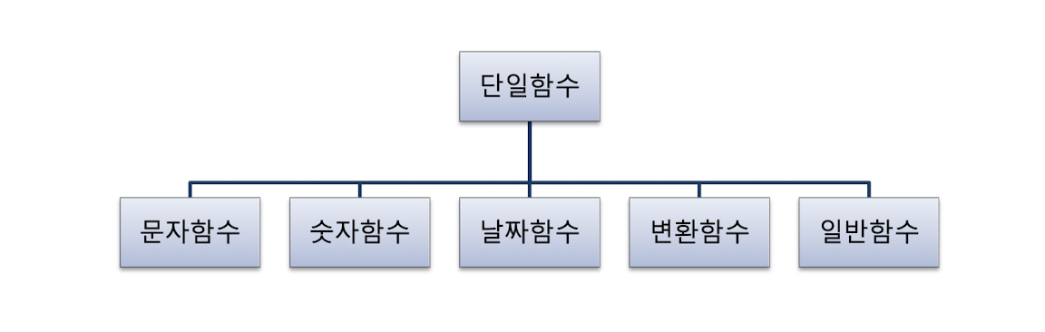 - 단일행 함수: 각각의 데이터를 한 건씩 처리