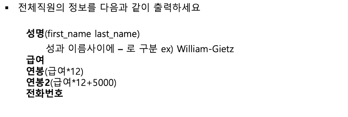 - 컬럼명 뒤에 공백을 주고 별명을 쓰는 방식: 대문자로 표기