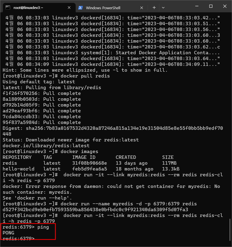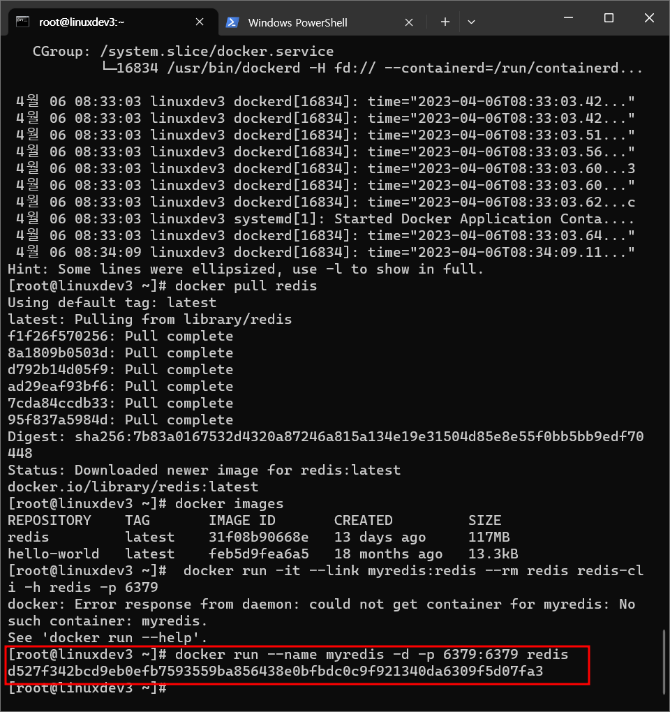 docker run -it --link myredis:redis --rm redis redis-cli -h redis -p 6379